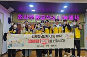 한국시사경제 김숙영 기자 | 김제 지역 청년들이 한마음으로 모여 지역사회에 따뜻한 나눔을 실천한 가운데, 김제시 성장전략실이 함께 참여해 의미를 더했다. 시는 30일, 청년단체 땡스마토, 선암, 선후애 소속 청년들과 성장전략실 직원들이 함께 김제천사무료급식소에서 배식 봉사활동을 진행했다고 밝혔다. 이날 봉사에 참여한 청년들은 이른 아침부터 급식소를 찾아 밝은 미소와 친절한 손길로 한 분 한 분께 안부를 전하고 배식, 식사 보조, 환경 정비까지 맡으며 어르신들이 따뜻한 한 끼를 편안하게 드실 수 있도록 정성을 다하며 단순한 급식을 넘어 마음을 나누는 뜻깊은 시간을 만들었다. 봉사에 참여한 한 청년은 “작은 정성이지만 어르신들에 도움이 될 수 있어 보람을 느꼈다”며 “앞으로도 청년들이 앞장서 지역사회와 함께 호흡하는 나눔 활동을 지속해 나가겠다”고 소감을 전했다. 각 단체 대표들 역시“앞으로도 다양한 연합 활동을 통해 김제에 따뜻한 변화를 만들어 가겠다”고 뜻을 모았다. 정성주 김제시장은“청년단체들이 자발적으로 힘을 모아 지역의 소외계층을 위한 나눔 활동에 참여해 준 것에 마음 깊이 감사드