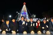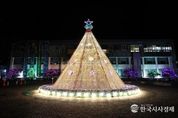 한국시사경제 김숙영 기자 | 무주군의 성탄 조형물 점등 행사가 지난 2일 군청 앞 분수대에서 개최됐다. 이번 점등 행사는 무주군 기독교연합회가 주최했으며, 황인홍 무주군수와 오광석 무주군의회 의장을 비롯한 군민 등 2백여 명이 함께해 의미를 더했다. 참석자들은 송서철 무주군 기독교연합회장이 전하는 성탄 메시지를 공유하며 트리 점등에 동참했다. 이 자리에서 황인홍 무주군수는 “군청 앞 성탄 트리는 단순한 장식을 넘어 모두에게 전하는 사랑과 평화의 메시지”라며 “바라보는 것만으로도 지역에는 아름다움을, 군민과 무주를 찾는 여러분의 마음에는 따듯함을 선사해 주기를 바란다”라고 전했다. 한편, 무주군청 앞 대형 분수대에 설치된 트리의 높이는 9m(둘레 24m)규모로, 무주읍 야간 경관과 어우러지는 조형물을 통해 겨울철 이색 볼거리를 만들고 활기찬 연말연시 분위기를 조성한다는 취지에서 마련됐다. 오색 조명으로 장식한 트리 외에도 ‘선물 보따리를 메고 군청 청사 등 건물을 오르는 산타’, 다양한 모양의 빛 조형물들이 설치돼 보는 즐거움과 감동을 더하고 있다. 이날 점등된 트리는 1월