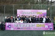 한국시사경제 김숙영 기자 | 해운대구는 반송동 꽃다래공원 인근 반송배수지(반송동 250-2841)에 ‘반송파크골프장’을 준공해 6일 개방했다. 이번에 조성한 반송파크골프장은 2천 700㎡의 유휴부지를 활용해 조성했다. 파크골프장 6홀, 퍼팅 연습장 3곳, 타격연습장 3곳을 비롯해 흙 먼지 털이기 등 편의시설도 설치했다. 주민 누구나 이용할 수 있으며, 인근에 반송1동 공영주차장이 있어 이용객의 접근성도 높을 것으로 기대한다. 지난 6일 열린 개장식에는 국회의원, 시 ․ 구의원, 지역 파크골프협회 회원 등 100여 명이 참석해 새로운 주민 건강․여가 공간 탄생을 축하했다. 구는 유휴부지를 활용한 생활체육시설 조성에 적극 나서고 있다. 어르신과 지역주민에게 체력단련과 여가생활을 즐길 수 있는 공간을 제공하기 위해서다. 이로써 해운대구에는 수영강 파크골프장, 좌동파크골프장, 해운대수목원 파크골프장, 반송파크골프장 등 모두 4개의 파크골프장이 있다. 김성수 구청장은 “주민들의 건강 증진을 위해 생활 가까이에서 자유롭게 이용할 수 있는 체육공간을 지속적으로 확충해 나가겠다”라고 말했