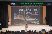 한국시사경제 김숙영 기자 | 부산 사상구는 11월 25일 오후 2시 사상구청 한마당홀에서 관내 주민과 공무원을 대상으로 ‘기후위기와 적응 그리고 우리’를 주제로 한 ‘2025년 사상구 기후·환경 아카데미’를 개최했다고 밝혔다. 이번 아카데미는 주민들이 기후변화의 심각성을 이해하고, 일상 속 실천 가능한 대응 방안을 모색할 수 있도록 마련된 교육 프로그램이다. 행사에서는 ▲‘하나뿐인 지구영상제’ 우수상 수상작 'Stars on the sea' 상영을 통해 기후위기에 대한 공감대를 확산하고, ▲(주)윌든 김승현 대표의 전문 강연이 이어져 교육의 몰입도를 높였다. 김승현 대표는 ‘기후위기와 적응 그리고 우리’라는 주제로 기후위기의 현주소를 설명하고, 개인과 공동체가 실천할 수 있는 구체적 적응·대응 전략을 제시했다. 참석자들은 기후위기 대응이 단순한 환경 보호를 넘어 삶의 질을 높이는 실천이라는 점에 공감하며 적극적인 참여 의지를 보였다. 조병길 사상구청장은 “이번 아카데미가 주민 스스로 탄소중립과 녹색생활을 실천하는 계기가 되기를 바란다”며 “사상구도 기후위기 적응과 지속 가능한 도시 전환