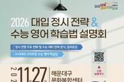 한국시사경제 김숙영 기자 | 해운대구는 오는 11월 27일 오후 6시 30분, 해운대구문화복합센터 대강당에서 ‘2026학년도 대입 정시 전략&수능영어 학습법 설명회’를 개최한다. 이번 설명회는 윤윤구 EBSi 입시 대표 강사(한양대부속고)가 강연자로 나서 2026학년도 수능 분석과 정시 전형의 주요 변화, 효과적인 지원 전략을 안내한다. 윤 강사는 교육부 정책 자문위원이자 수능 출제·검토위원으로 활동한 경험을 바탕으로, 수험생과 학부모에게 실질적인 입시 방향을 제시할 예정이다. 또한, 김효은 전 EBSi 영어 강사가 AI시대에 맞춘 스마트한 수능 영어 학습법을 소개해 수험생들의 학습 효율을 높이는 방법을 전한다. 이번 설명회는 해운대구청과 해운대구진로교육지원센터가 공동 주관하며, 11월 17일 오전 10시부터 해운대구청 홈페이지에서 선착순 210명 접수로 진행된다.