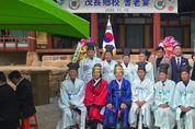 한국시사경제 김숙영 기자 | 고창군 무장향교가 12일 경로 효친 사상을 북돋아 높이기 위해 기로연(耆老宴)을 개최했다. 무장향교 기로연에는 심덕섭 고창군수와 유림회원 등 100여 명이 참석한 가운데 행사를 통해 선현(先賢)의 훌륭한 ‘효’ 정신을 기렸다. 기로연은 조선시대에 70세 이상 원로 문신에게 매년 봄 상사(上巳 : 음력 3월 3일)과 가을 중양(重陽 : 음력 9월 9일)에 베풀었던 잔치다. 오늘날에는 향촌 유생들의 교화(敎化)와 상규(相規)의 향음주례(鄕飮酒禮) 정신을 담고 있어 지방 유림이 유교 문화와 경로효친 사상을 계승 발전시키는데, 크게 기여하고 있다. 특히 이날 장수상을 수상한 90세 이성진 어르신(성송면)은 전(前) 고창 산림조합장을 역임하는 등 훌륭한 지역사회의 일원으로 이웃을 사랑하는 마음이 남다르고 아름답게 장수했기에 그 의미를 더했다. 김형석 무장향교 전교는 “효를 근간으로 하는 우리의 아름다운 전통 윤리와 미풍양속이 점차 사라져 가는 현대사회에서 이러한 전통 유교문화가 더욱 계승 발전할 수 있도록 노력하겠다”라고 말했다. 심덕섭 고창군수는 “기로