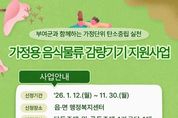 한국시사경제 김태훈 기자 | 부여군은 가정에서 발생하는 음식물류 폐기물을 줄이기 위해 ‘가정용 음식물류 폐기물 감량기기 보조금 지원사업’을 올해 1월부터 시행한다고 밝혔다. 이번 지원사업은 부여군에서 발생하는 음식물류 폐기물 발생량을 줄이고, 배출·처리 과정에서 발생하는 악취를 개선하기 위해 마련됐다. 지원 대상은 공고일 이전 부여군에 주소지를 둔 실제 거주하는 자를 대상으로 하며, 1가구당 구매비용의 50%, 최대 35만 원까지 지원된다. 단, 분쇄 등을 통해 하수구로 배출하는 기기는 지원 대상에서 제외된다. 신청은 1월 12일부터 각 읍면 행정복지센터를 통해 진행하며, 지원 대상자는 예산 소진 시까지 선착순으로 선정된다. 자세한 사항은 부여군청 누리집 공고문을 통해 확인이 가능하다. 박정현 부여군수는 “이번 지원사업을 통해 음식물 쓰레기 배출량을 줄이고 처리비용 절감은 물론, 주민들의 생활 불편도 크게 해소될 것으로 기대한다.”라며, “앞으로도 자원순환과 환경보호를 위한 다양한 정책을 지속적으로 추진하겠다.”라고 말했다.