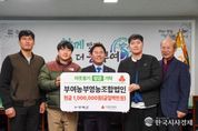 한국시사경제 김태훈 기자 | 부여 농부영농조합법인(대표 최동혁)은 부여군청을 방문해 이웃돕기 성금 100만 원을 기부했다. 이번에 기탁된 성금은 부여군 내 저소득 가구를 지원하기 위해 마련됐으며, 새해를 맞아 지역사회에 온정을 전하고자 하는 뜻에서 기탁이 이뤄졌다. 부여 농부영농조합법인은 부여군 임천면에 소재한 친환경 농업 단체로, 친환경 농법을 기반으로 벼 재배를 통해 안전하고 건강한 농산물 생산에 힘쓰고 있다. 최동혁 대표는 “작은 정성이지만 새해를 맞아 어려운 이웃들에게 도움이 되기를 바란다.”라며, “앞으로도 지역사회와 상생하며 나눔을 실천하는 농업인이 되도록 노력하겠다.”라고 말했다. 이에 군수는 “지속적인 나눔을 통해 지역사회에 모범을 보여주고 있는 부여 농부영농조합법인에 깊이 감사드린다.”라며, “기탁해 주신 성금은 꼭 필요한 이웃들에게 소중히 전달하겠다.”라고 전했다. 한편, 부여 농부영농조합법인은 지난 2024년 친환경 유기농 쌀 기탁과 2025년 영남지역 산불 피해 복구 성금 기탁 등 꾸준한 사회공헌 활동을 이어오고 있다.