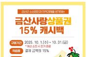 한국시사경제 김태훈 기자 | 금산군은 지역 상권에 활기를 불어넣기 위해 9월부터 적용한 금산사랑상품권 캐시백 적립률 15%를 10월에도 유지한다. 상품권 15% 캐시백 유지는 주민 호응과 정부의 지역사랑상품권 정책 기조를 반영해 추진하며 민족 최대 명절인 추석을 맞아 명절 선물 구입 및 제수용품을 해야 하는 주민들의 부담을 줄일 것으로 예상된다. 금산사랑상품권은 스마트폰 앱 지역상품권 착(chak)을 통해 상품권을 구매한 뒤 가맹점에서 결제하면 되며 지역 음식점·병원·학원·미용실 등 약 2900개 가맹점에서 사용할 수 있다. 캐시백 적립은 종이 상품권은 적용되지 않고 모바일·카드 상품권에서만 이뤄진다. 군 관계자는 “금산사랑상품권 캐시백 적립은 소비만 해도 혜택을 받을 수 있다”며 “지역 경제 활성화에도 도움이 되는 상품권을 많이 이용해 주시길 바란다”고 말했다.