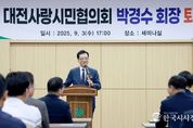 한국시사경제 김태훈 기자 | 대전시의회 조원휘 의장은 3일 시청 세미나실에서 개최된 대전사랑시민협의회장 퇴임식에 참석해 지역사회에 시민의 목소리에 귀 기울이며 전달자 역할에 헌신해 오신 박경수 회장에 대해 감사를 표했다. 이날 행사에는 지역을 대표하는 단체·기관장, 협의회 이사 및 회원 등 100여 명이 참석한 가운데 박경수 회장의 퇴임사를 시작으로 감사패 전달, 주요내빈 축사, 기념촬영 순으로 진행됐다. 조원휘 의장은 “지난 2023년 9월, 제11대 회장으로 취임하신 박경수 회장은 재임하는 동안 취약계층 나눔, 안전 캠페인, 대전 0시 축제 자원봉사 등 시민 역량을 결집하며 밝은 대전을 만들기 위해 노력해 오셨다”면서, “회장님의 퇴임에 아쉬움도 크지만, 대전을 위해 최선을 다해 오신 점에 대해 깊은 감사를 전하고, 앞으로도 대전이 더 따뜻하고 행복한 도시가 될 수 있도록 대전사랑시민협의회가 대전의 든든한 버팀목이 되어 왕성한 활동을 이어가길 진심으로 기원한다”고 말했다.