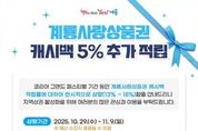 한국시사경제 김태훈 기자 | 계룡시는 코리아 그랜드 페스티벌 기간 동안 지역 내 소비 활성화를 위해 모바일 계룡사랑상품권 사용 시 캐시백 적립률을 한시적으로 5% 추가하여 13%에서 18%로 상향한다고 밝혔다. 이번 혜택은 국가단위 할인행사인 ‘코리아 그랜드 페스티벌’ 기간에 맞춰 침체된 지역상권에 활력을 불어넣고, 시민들에게 실질적인 소비 혜택을 제공하기 위한 것으로 10월 29일부터 11월 9일까지 12일간 시행된다. 단, 예산 소진 시 5% 추가 적립은 조기 종료될 수 있다. 모바일 계룡사랑상품권은 행사 기간 동안 18% 캐시백이 적용되며, 종료 후 올해 말까지는 13% 적립률이 유지되고 구매 한도는 월 50만 원, 보유 한도는 100만 원이다. 상품권은 구글 플레이스토어 또는 앱스토어에서 ‘지역상품권 chak’ 앱을 설치한 뒤 회원가입을 통해 간편하게 구매할 수 있다. 시는 이번 캐시백 확대를 통해 시민들의 소비 참여를 유도하고, 소상공인과 영세상권의 매출 증대에 도움이 될 것으로 기대하고 있다. 이응우 계룡시장은 “코리아 그랜드 페스티벌과 연계한 이번 캐시백 혜택이
