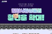 한국시사경제 김태훈 기자 | 경남 밀양시는 밀양사랑상품권 발행 규모를 확대해 연말까지 총 1,000억원을 발행하고, 9월부터 12월 말까지 할인율을 기존 10%에서 15%로 상향해 판매한다고 1일 밝혔다. 이번 할인율 상향 조정은 추석을 앞두고 추진되는 민생회복 소비쿠폰 2차 지급과 연계해 지역 내 소비 촉진과 소상공인 매출 증대를 통한 지역경제 활성화를 도모하기 위한 것이다. 특히 특별재난지역으로 지정된 무안면의 지역사랑상품권 가맹점에서 결제할 시에는 추가 5%가 환급된다. 단, 종이상품권은 제외된다. 밀양사랑상품권은 종이상품권, 밀양사랑카드, 모바일(제로페이) 상품권 등 3종으로 발행되며, 1인당 월 구매 한도는 총 100만원이다. 구매 방식별 한도는 종이상품권 20만원, 모바일(제로페이) 20만원, 밀양사랑카드 60만원으로 구분된다. 밀양시 관계자는 “이번 상품권 확대 발행과 할인율 상향이 시민들의 가계 부담 완화와 지역 상권 활성화에 도움이 되길 바란다”라며 “특히 추석 명절과 하반기 지역경제에 긍정적인 효과가 나타날 것으로 기대한다”라고 밝혔다.