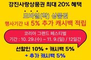 한국시사경제 김태훈 기자 | “희망이 되는 소비, 함께 성장하는 경제”란 비전 아래 10개 부처와 3만 개 유통사가 참여하는 대규모 할인 축제인 ‘코리아 그랜드 페스티벌’이 개최된다. 지역상품권뿐만 아니라 온누리상품권, 농․축․수산물, 가전제품, 숙박․관광, 면세점 등 다양한 분야에서 가격 할인 및 쿠폰 발행 혜택을 제공한다. 기간은 오는 29일부터 11월 9일로 12일간 진행되며, 이에 지역경제 활성화를 위해 강진군도 참여한다. 강진군은 모바일(착) 강진사랑상품권의 할인율을 5% 인상해 행사기간에 총 20%(선할인 10% + 캐시백 5% + 추가 캐시백 5%)의 혜택을 지원한다. 할인율 인상에 대한 비용은 전액 국비로 지원되며, 지원되는 국비는 총 1억 2천만 원으로 예산 소진 시 조기 종료된다. 관내 모바일(착) 상품권은 음식점, 전통시장, 주유소, 미용실, 병원, 마트 등 지역 내 1,600여 개의 가맹점에서 사용할 수 있다. 자세한 가맹점 안내는 강진군 홈페이지 및 지역상품권 chak(앱) ‘가맹점 찾기’에서 확인할 수 있다. 군 관계자는 “지류(종이)형