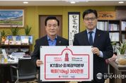 한국시사경제 김태훈 기자 | KT충남·충북광역본부가 지난 28일 어려운 이웃을 위해 총 3백만원 상당의 백미(10kg) 95포를 기탁하며 뜻깊은 나눔을 실천했다. 기탁된 백미는 논산시 관내 사회복지시설을 통해 저소득 취약계층에게 전달되어, 시설 입소자들의 따뜻한 겨울나기에 큰 힘이 될 것으로 기대된다. KT충남·충북광역본부 송영태 본부장은 “지역사회의 행복과 건강을 위해 지속적으로 나눔을 실천할 것”이라며 “앞으로도 지역과 함께 성장하는 기업의 책임을 다하겠다”고 말했다. 백성현 논산시장은 “소중한 나눔을 실천해 주신 KT충남충북광역본부에 깊이 감사드리며, 기탁된 물품이 필요한 분들께 잘 전달되어 따뜻한 온기로 이어지도록 최선을 다하겠다”고 전했다.