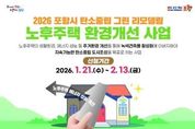 한국시사경제 노승선 기자 | 포항시는 노후주택의 주거환경 개선과 에너지 비용 절감을 위해 2026년도 그린리모델링 지원사업을 시행한다. 이 사업은 생활환경과 에너지 성능이 저하된 노후주택을 대상으로 단열, 창호, 냉난방 효율 개선 등을 지원해 시민의 삶의 질을 높이고 녹색건축물 확산을 도모하기 위해 마련됐다. 지원 대상은 ‘건축법’에 따른 사용승인 후 15년 이상 경과된 주거용 건축물로 단독주택과 다가구주택, 아파트·연립·다세대주택 등 19세대 이하 공동주택과 단독·공동주택 및 근린생활시설이 복합된 연면적 660㎡ 이하 건축물이다. 신청 자격은 해당 건축물의 등기상 소유자다. 지원 내용은 건축물의 에너지 사용량 절감과 성능 개선을 위한 내·외부 단열공사, 고성능 기밀 창호 교체, 냉난방 효율 개선 공사, 신·재생에너지 설비 설치 등으로, 총공사비의 50% 이내에서 최대 500만 원까지 지원된다. 신청은 이달 21일부터 2월 13일까지 포항시청 건축디자인과를 방문하거나 등기우편으로 접수하면 되며 자세한 사항은 포항시청 홈페이지 또는 해당 부서 및 읍면동 행정복지센터로 확인할 수 있다.