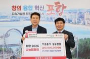 한국시사경제 노승선 기자 | 포항시는 15일 (사)포항시유망강소기업협의회가 ‘희망 2026 나눔 캠페인’에 동참하기 위해 1천만 원의 성금을 기탁했다고 밝혔다. 이날 전달식에는 박제서 협의회장(코아시스템 대표)을 비롯해 임원진, 회원사 등 총 10여 명이 참석해 지역사회와 함께하는 지속적인 나눔 실천에 뜻을 함께했다. 성금 전달식 이후에는 경기침체로 인해 겪는 기업 운영 과정의 애로사항을 공유하고, 지역과의 상생 동행을 위한 협의회의 역할에 대해 논의하는 시간을 심도 있게 가졌다. 앞서 협의회는 지난해 4월에도 지역인재 육성을 위한 1천만 원의 장학금을 기탁한 바 있으며, 이 외에도 저출생 극복 성금 전달 등 다양한 사회공헌 활동을 통해 지역사회와의 긴밀한 네트워크를 구축하고 있다. 이강덕 포항시장은 “기업의 경영 여건이 어려운 시기임에도 불구하고 신년을 맞아 지역사회를 위해 따뜻하고 귀한 마음을 나눠주심에 감사드린다”며, “전해주신 성금은 도움이 필요한 지역민들을 위해 소중히 활용하겠다”라고 말했다.