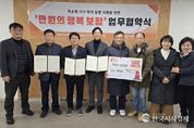한국시사경제 노승선 기자 | 서울 강동구 길동주민센터는 14일, 서울강동우체국, 길동지역사회보장협의체와 함께 저소득 가구의 경제적 위기상황에 대응하기 위한 ‘만원의 행복 보험’ 지원 협약을 체결했다고 밝혔다. ‘만원의 행복 보험’은 만 15세부터 65세까지의 생계·주거급여 수급자 및 차상위계층 중 상해보험 가입이 어려운 복지대상자를 위해 마련된 사회안전망 사업이다. 보험 가입 시 대상자는 1년간 보장 혜택(유족위로금 최대 2,000만원, 재해수술보험금 최대 100만원, 재해입원보험금 1일 1만원)을 받을 수 있으며, 만기 시에는 보험료 전액(1만원)을 환급받는다. 이번 사업은 2026년 1월부터 12월까지 진행되며, 천호동 성결교회(담임목사 이기철)의 후원금이 보험료(1인당 1만원)로 사용된다. 지난해 처음으로 68명을 지원한 실적을 바탕으로, 올해는 약 100만원의 예산으로 최대한 많은 가구에 혜택이 돌아갈 수 있도록 추진할 계획이다. 특히 올해는 만 50세에서 65세 사이의 의료비 부담이 큰 계층을 우선 발굴하되, 만 15세에서 49세 대상자에 대해서도 지속적으로 연계·지원할 방침이다. 주민센터