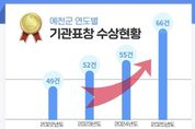 한국시사경제 노승선 기자 | 예천군은 2025년 한 해 동안 중앙·광역·민간 평가 전반에서 우수한 성과를 거두며 총 66건의 기관 표창을 수상했다고 밝혔다. 이는 2022년 49건, 2023년 52건, 2024년 55건에 이어 4년 연속 증가한 실적으로, 매년 자체 최고 기록을 경신하며 꾸준한 상승 곡선을 그리고 있다. 특히 예천군은 전통적인 농촌행정 중심 구조에서 경북도청 신도시 조성에 따른 도시행정 수요까지 동시에 감당해야 하는 이중적 행정 환경 속에서도 성과를 이어가고 있다는 점에서 의미가 크다. 농업·농촌 분야의 전문성과 함께 도시 기반 행정, 복지·안전, 문화·환경 정책까지 행정 영역이 확장되는 과정에서도 군정 전반의 안정성과 실행력이 대외적으로 인정받고 있다는 평가다. 2025년 수상 내역을 살펴보면 중앙 단위 평가 20건, 광역 단위 평가 42건, 민간 평가 4건으로 고른 분포를 보였으며, 이를 통해 확보한 상 사업비는 590백만 원, 시상금은 130백만 원에 달한다. 주요 수상 실적으로는 ▲2025년 전국민 마음투자 지원사업 우수기관 ▲경상북도 지역개발사업 추진실적 평가