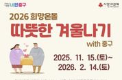 한국시사경제 노승선 기자 | 서울 중구가 지난해 11월 15일부터 사회복지공동모금회와 함께 진행 중인‘2026 희망온돌 따뜻한 겨울나기’사업에 지난 1월 13일 기준, 구의 목표 모금액의 약 69%인 12억1천여만원의 성금·품이 모였다고 밝혔다. 구는 설 명절을 앞두고 있는 만큼 목표액을 달성할 수 있을 것으로 내다보고 있다. 이번에도 모금이 시작되자마자 지역사회 곳곳에서 온정 이어졌다. 개인 후원자 조양 씨가 6천만원, ㈜투데이아트 대표 박장선 씨가 4천만원을, 메리츠화재해상보험(주)와 새마을금고 명동지점에서 취약 주민을 위해 각각 5천만원을 쾌척했다. 한화손해사정도 3천만원을, 한국캐피탈은 2천만 원을 기탁했다. ㈜유진건업과 ㈜백송기업은 각각 1천만 원을 중구어린이집연합회는 1천오백만 원, 중구교구협의회와 지지무역은 각각 1천만 원을 후원했다. 관내 기업들이 성품으로 주민 일상에 힘을 보탰다. BAT로스만스는 간편식과 유산균, 목욕·방한용품을 300가구에 전달했고, DIG에어가스는 라면 200박스, 서원라이프는 쌀 150포, 우리원헬스케어에서는 쌀 200포를 후원해 이웃들의 식탁을 채웠다. &n