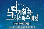 한국시사경제 노승선 기자 | 경북 칠곡군은 오는 12월 6일부터 왜관역 광장 일원에서‘2025 럭키칠곡 크리스마스 마켓’을 개최한다. 겨울축제가 없는 칠곡에서 연말연시를 따뜻하고 환하게 밝혀줄 겨울철 신규 관광콘텐츠로 기획된 럭키칠곡 크리스마스 마켓은 ‘with 화이트 트리숲’을 부제로 12. 6. / 12. 13. / 12. 20. / 12. 24. / 12. 25. 총 5회에 걸쳐 오후 4시부터 오후 9시까지 운영한다. 지역 소상공인 셀러가 참여하고 크리스마스 디자인으로 예쁘게 꾸며진 마켓은 ▲크리스마스 용품 ▲수공예품 ▲먹거리(겨울간식 등) ▲농․특산품 등 다양한 제품을 선보일 예정이며 미니트리&케익&쿠키 만들기, 소원등 달기, 군밤체험 등 가족 및 연인들에게 특별한 추억을 선사할 체험 콘텐츠도 준비하여 관광객을 맞이할 예정이다. 또한 마켓 운영일에는 버스킹, 마술, 마임 및 지역민이 참여한 성가대 등 다채로운 공연과 인플루언서 ‘산티’의 1분 캐리커쳐 및 칠곡 산타할매 등 이색 이벤트도 현장에서 진행되어 색다른 재미를 더할 예정이다. 특히 행사기간 동안 왜관역 광장에 대형트리를 포함한‘화이트