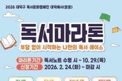 한국시사경제 대전취재본부 | 대전 대덕구가 주민들의 독서 습관 형성을 돕기 위해 ‘2026 독서마라톤’을 운영한다. 구는 24일부터 대덕구 공공도서관(석봉·안산·송촌도서관)에서 독서마라톤 참가자를 선착순으로 모집한다고 밝혔다. ‘독서문화캠페인 대덕애서’의 일환으로 추진하는 이번 사업은 연중 목표를 설정해 완주까지 이어가는 관리형 프로그램이다. 특히 참여자가 스스로 독서 목표를 설정하고 독서노트 기록을 통해 완주까지 이어갈 수 있도록 도서관이 ‘독서 러닝메이트’ 역할을 수행한다. 프로그램은 개인과 단체로 나뉘어 운영된다. 개인 참여자는 △15권 ‘동춘당 코스’ △20권 ‘계족산 코스’ △25권 ‘대청댐 코스’ 중 하나를 선택할 수 있으며, 3~7인으로 구성된 단체는 △40권 ‘대덕애서 코스’에 참여할 수 있다. 참가자는 제공 받은 독서노트에 감상문, 감상평, 인상 깊은 문장 필사 등 자유 형식으로 독후활동을 작성한 후 완성된 독서노트를 촬영해 네이버 밴드(Booking~ 대덕구 도서관)에 게시하고 도서관에 제출하면 완주가 인정된다. 제출된 독서노트는 완주증 수여 시 반환되며,