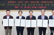 한국시사경제 대전취재본부 | 대전시는 18일 시청에서 KAIST, 한국전자통신연구원(ETRI), 한화시스템, 대전테크노파크와 ‘국방·우주반도체 국내 공급망 구축을 위한 업무협약’을 체결했다. 이날 협약식에는 이장우 대전시장, 이광형 KAIST 총장, 방승찬 ETRI 원장, 손재일 한화시스템(주) 대표, 김우연 대전테크노파크 원장이 참석했다. 이번 협약은 국가 안보에 필수적인 국방·우주반도체 개발 및 제조 생태계 구축을 목표로 한다. 협약 기관들은 ▲반도체 국산화 및 성능 고도화를 위한 공동 연구개발 ▲공정개발 및 제조를 위한 공공팹(fab) 구축 ▲전문인력 양성 등 다방면에서 협력하기로 했다. 최근 세계 4대 방산 강국 도약을 목표로 급성장 중인 K-방산 산업과 민간이 주도하는 ‘뉴스페이스(New Space)’ 시대의 우주산업에서 핵심 반도체의 외국 의존도가 높아 안정적 공급망 확보가 국가 경쟁력의 핵심 과제로 떠오르고 있다. 이를 해결하기 위해 방위사업청은 지난해 국방반도체사업단을 대전에 개소하고, 국방반도체 국내 생산능력 확보를 골자로 한 국방반도체 발전 전략을 수립했다. 또한 우주항공청 역시