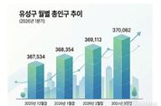 한국시사경제 대전취재본부 | 대전 유성구가 지난 1분기 인구 통계에서 뚜렷한 성장세를 보이며 대전광역시 인구 증가 흐름을 견인한 것으로 나타났다. 유성구가 2025년 12월 말부터 2026년 3월 말까지 주민등록 인구를 분석한 결과, 1분기 유성구 인구는 36만 7,534명에서 37만 62명으로 2,528명이 늘었다. 이 기간 대전시 전체 증가 인구수 1,050명(144만 729명→144만 1,779명)을 크게 상회하는 수치로, 5개 자치구 가운데 가장 큰 증가세를 기록했다. 특히 청년층 유입이 두드러진다. 대전시 전체 청년 인구(만 19~34세)는 30만 8,495명에서 30만 7,415명으로 1,080명 감소한 반면, 유성구는 같은 기간 8만 7,106명에서 8만 7,247명으로 141명 증가했다. 유성구는 다른 구에서 모두 감소한 0~9세, 40~59세 인구도 각각 159명, 425명 늘었다. 이러한 증가세로 유성구는 대전의 인구 유입을 이끄는 핵심 지역이자 도시의 활력을 좌우하는 청년층이 모이는 지역이라는 점을 다시 한번 입증했다. 유성구는 인구 증가세를
