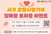 한국시사경제 대전취재본부 | 대전 서구는 9월 30일까지 한 달간 ‘서구 아트페스티벌’과 연계한 ‘고향사랑기부 답례품 트리플 이벤트’를 진행한다고 4일 밝혔다. 이번 이벤트는 9월 4일 ‘고향 사랑의 날’을 기념하고, 오는 10월 10일부터 12일까지 개최되는 서구 아트페스티벌과 연계함으로써 고향사랑기부제에 대한 관심과 참여를 늘리기 위해 마련됐다. 주민등록상 대전 서구 외 지역 거주자가 ‘고향사랑e음’ 홈페이지 접속 또는 NH농협을 방문하여, 서구에 고향사랑기부금을 10만 원 이상 기부하고 답례품을 신청하면 자동으로 이벤트에 응모된다. 추첨을 통해 △3만 원 상당의 답례품 추가 제공(50명) △아트페스티벌 개막식 무대 앞 좌석 및 스탠딩석 제공(80명) 등의 혜택이 주어진다. 서철모 청장은 “고향사랑기부제가 지역 발전을 위한 소중한 재원으로 자리매김할 수 있도록 다양한 참여 기회를 마련하고 있다”며 “이번 이벤트가 기부 문화 확산과 함께 서구 아트페스티벌의 열기를 더하는 계기가 되기를 바란다”고 말했다. 고향사랑기부제는 개인의 주민등록상 주소지를 제외한 다른 지자체에 연간 최대 2,0