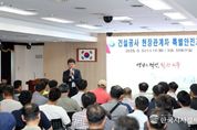 한국시사경제 대전취재본부 | 대전 유성구는 4일 유성구청 중회의실에서 안전사고 예방과 지역 건설업체 참여 활성화를 위해 민간 대형 건축 공사장 현장대리인 간담회를 개최했다. 이날 간담회에는 ▲도안 2-2지구 힐스테이트 도안 리버파크 4개 단지 ▲도안2-5지구 도안 푸르지오 디아델 2개 단지 ▲도안 우미린 트리쉐이드 ▲대전학하 포레나 1단지 ▲유성 하늘채 하이에르 ▲둔곡지구 머크사 바이오프로세싱 생산센터 ▲관평동 민재활병원 등 연면적 5,000㎡ 이상 11개 대형 민간건축공사 현장대리인과 관계 공무원이 참석했다. 간담회에서는 지역업체 참여 기회 확대 등 지역 건설 산업 활성화 방안을 논의했으며, 유성경찰서가 안전사고 예방 교육과 중대재해처벌법 관련 유의 사항을 안내해 현장대리인들의 이해를 높였다. 정용래 유성구청장은 “민간 건축 공사장의 안전사고 예방과 지역 건설업체의 참여 확대는 중요한 과제”라며 “현장의 의견을 적극 반영해 민·관이 함께하는 안전하고 지속 가능한 건설 환경을 조성하겠다”라고 말했다.