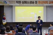 한국시사경제 대전취재본부 | 대전 대덕구는 21일 구청 청렴관에서 공직자의 응급 상황 대응 역량 강화를 위한 심폐소생술(CPR) 및 응급처치 교육을 실시했다고 밝혔다. 최근 일상 공간에서 심정지·기도 폐쇄 등 돌발 상황이 늘며 골든타임 확보의 중요성이 커짐에 따라, 공직자가 응급 상황에서 주민의 생명과 안전을 지킬 초기 대응 능력을 갖추도록 하기 위한 조치다. 교육은 그간 심폐소생술 과정을 이수하지 못한 직원과 신규 임용 공무원 등 60여 명을 대상으로 진행됐으며, 대덕소방서 소방관이 강사로 참여해 실습 위주로 운영됐다. 참여 직원들은 마네킹과 자동심장충격기(AED) 훈련기를 활용해 △정확한 흉부 압박 및 인공호흡 △AED 사용 요령 △기도 폐쇄 대처법 △상황별 응급 구조 절차 등을 반복 훈련했다. 구 관계자는 “실습 중심의 체험형 교육을 통해 초기 대응의 정확도와 자신감을 끌어올렸다”고 설명했다. 최충규 대덕구청장은 “예상치 못한 위기에서 초기 대응의 몇 분이 생사를 가른다”며 “직원 역량을 지속적으로 강화해 구민이 안심하는 행정 환경을 만들고, 구민 안전망을 더욱 촘촘히 하겠다”고