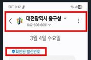 한국시사경제 대전취재본부 | 대전 중구는 구청에서 발송하는 구정 안내 및 민원처리 관련 문자메시지의 신뢰도를 높이고 스미싱 피해를 예방하기 위해 ‘안심마크서비스(RCS)’를 본격 시행한다고 5일 밝혔다. 안심마크서비스(RCS, Rich Communication Services)는 구청에서 발송하는 문자메시지에 대전 중구의 공식 마크와 기관 명칭을 함께 표시해 발신처가 공공기관임을 인증하는 서비스다. 기존에는 구청에서 발송하는 문자메시지에 발신자의 전화번호만 표시되어 발신처를 명확히 확인하기 어려웠으며, 특히 스미싱(문자메시지를 이용한 금융 사기)피해를 우려한 구민들이 중요한 안내 문자를 열람하지 않는 경우가 많았다. 구는 이러한 불편과 위험을 해소하기 위해 구민들이 발신처를 직관적으로 파악할 수 있도록 안심마크서비스를 도입했다. 이를 통해 행정 서비스에 대한 신뢰도를 높이는 것은 물론 불법 스미싱으로부터 구민들의 소중한 재산을 보호하는 데 큰 도움이 될 것으로 기대하고 있다. 김제선 중구청장은 “이번 서비스 도입으로 구청 발송 문자를 누구나 안심하고 확인할 수 있는 환경을 조성해 구민과의 소통을 더