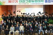 한국시사경제 대전취재본부 | 대전광역시농업기술센터는 14일 농업기술센터 대강당에서 제17기 대전그린농업대학 졸업식을 진행했다. 이번 졸업식은 지난해 4월 1일 입학한 69명의 교육생이 졸업장을 수여 받았다. 대전그린농업대학은 지금까지 총 1,317명의 전문 농업인을 배출하며 첨단 과학농업을 선도하는 지역 농업인 교육의 중심 기관으로 자리매김하고 있다. 제17기 대전그린농업대학은 전원생활반, 스마트농업반으로 나누어 24회 과정 동안 매주 화요일 4시간씩 운영됐다. 교육 내용은 채소, 과수, 화훼, 특용작물, 토양관리, 병해충 방제, 스마트팜 시설 및 재배 관리 등 농업 현장에서 필요한 전반적인 기술을 다루었으며, 교육생들은 이론 강의뿐만 아니라 현장 실습, 조별 토론, 선진지 견학 등을 통해 실질적인 역량을 강화했다. 또한 과정에는 각 분야 최고 수준의 전문가들이 강사로 참여해 첨단 농업기술과 최신 경향을 소개함으로써 교육생들의 만족도를 높였다. 특히 스마트농업 분야의 심화 교육은 미래 농업 경쟁력을 높였다는 평가다. 이장우 대전시장은 격려사를 통해 “대전그린농업