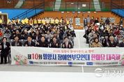 한국시사경제 문화팀 | 경남 밀양시는 21일 밀양문화체육회관에서 (사)장애인부모연대 밀양시지회(회장 황순옥) 주관으로 ‘제10회 장애인부모연대 한마당 대축제’를 개최했다고 밝혔다. 이번 행사는 장애아동과 발달장애인에 대한 사회적 인식을 높이고, 장애인과 그 가족들에게 희망과 용기를 전하기 위한 ‘희망 프로젝트’의 일환으로 마련됐다. 행사에는 기관·단체 관계자, 장애인과 가족, 자원봉사자 등 300여 명이 참석했다. 1부 기념식은 △식전 공연 △유공자 표창 △장애인 미술대회 시상 △내빈 소개 △대회사 △격려사 △축사 순으로 진행됐다. 이어진 2부에서는 체육대회, 노래자랑 등 참여형 프로그램이 진행돼 함께 어울리는 시간을 가졌다. 특히 이날 행사에서는 ‘장애인 미술대회’ 시상식이 함께 열렸다. 대상 1명, 최우수상 1명, 우수상 2명, 협회상 1명, 장려상 4명 등 총 9명이 수상의 영애를 안았다. 이번 미술대회는 이달 초 지역 내 초·중·고 특수교육 대상 학생과 성인 발달장애인을 대상으로 ‘추석’을 주제로 공모를 진행했다. 황순옥 지회장은 “부모의 힘으로 세상을 바꾸자는 우리 단체의 슬로건처럼, 부모