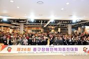 한국시사경제 문화팀 | 울산지체장애인협회 중구지회가 11월 20일 오전 10시 30분 울산시티컨벤션 안다미로홀에서 제26회 장애인복지증진대회를 개최했다. 이번 행사는 장애에 대한 인식을 개선하고 장애인과 비장애인 사이의 소통을 증진하기 위해 마련됐다. 이날 행사에는 김영길 중구청장과 박경흠 중구의회 의장, 이길우 울산시지체장애인협회장, 정진수 울산시장애인총연합회장, 울산지체장애인 중구지회 관계자, 장애인 및 가족, 자원봉사자 등 350여 명이 함께했다. 이번 행사는 울산중구자원봉사센터 봉사단의 우쿨렐레와 바이올린 연주, 숟가락 난타 공연으로 막을 열었다. 1부 기념식은 △장애인 복지 증진 유공자 표창 및 감사패 수여 △개회사 △격려사 △축사 △기념촬영 순으로 진행됐다. 2부 문화 행사 순서에서는 초대 가수 김송, 배채연의 축하공연과 참가자 장기자랑 등이 펼쳐졌다. 김영길 중구청장은 “장애인 권익 신장과 복지 증진을 위해 힘써주신 모든 분들에게 감사드린다”며 “앞으로도 장애인과 비장애인이 서로 존중하며 더불어 사는 행복한 사회를 만들기 위해 노력하겠다”고 밝혔다.