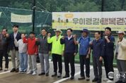 한국시사경제 문화팀 | 양주시 장흥면이 지난 22일 장흥면 체육회 주최로 ‘우이령길 행복걷기 대회’를 성황리에 개최했다고 밝혔다. 이번 행사는 장흥면 우이령의 존재와 아름다움을 시민들에게 널리 알리고, 직접 두 발로 체험할 수 있는 기회를 제공하고자 마련됐다. 참가자들은 오전 9시 30분 장흥면 교현탐방지원센터에 집결하여 약 2.3km 구간을 거닐며 지친 일상에서 잠시 벗어나 “힐링”하는 시간을 가졌다. 비 소식에도 불구하고 강수현 양주시장과 윤창철 양주시의회 의장 및 시·도의원을 비롯한 각 기관·사회단체장 및 양주시민, 서울 근교 거주민 등 약 1,000여 명이 참석해 뜨거운 관심과 성원을 받았다. 또한, 오봉산 석굴암이 보이는 장소에서 개회식과 축하공연도 함께 진행됐다. 김성재 회장은 ‘우이령의 존재와 매력을 널리 알리고자 이번 대회를 기획했다’고 말했다. 강수현 양주시장은 “많은 시민분들께서 우이령에 깊은 관심을 갖고 행사에 참여해 주신 것에 대해 감사하다”며 “양주의 대표 절경지인 오봉산이 보이는 우이령길에서 함께 양주의 매력을 느낄 수 있어 기쁘다”고 소회를 드러냈다. &n