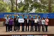 한국시사경제 문화팀 | (사)나누는 사람들가 지역사회 독거노인 지원을 위한 나눔 프로젝트인 ‘전주함께미(米)소(笑)’에 동참했다. (사)나누는 사람들은 19일 건지산 오송제 일대에서 9개 산하기관 임직원 100여 명이 참여한 가운데 ‘직원 건강 걷기대회’ 행사를 개최했다. 이번 건강걷기대회는 (사)나누는 사람들이 몸과 마음이 건강한 법인으로 나아가기 위해 마련된 행사로, 참석한 임직원들은 걷기운동과 건지산 진입로 줍깅, 환경보호활동, 미니올림픽 등을 진행했다. 특히 참여한 임직원들은 전주 하계올림픽 유치를 기원하는 퍼포먼스를 펼치기도 했다. 이와 함께 (사)나누는 사람들은 우범기 전주시장, 이순태 나누는 사람들 대표이사, 최재훈 전주시노인복지관연합회장 등이 참석한 가운데 전주지역 독거노인 지원을 위한 나눔 프로젝트인 ‘전주함께미(米)소(笑)’ 기부금 전달식을 가졌다. 이 자리에서 (사)나누는 사람들 임직원들은 나눔 문화 확산을 위한 프로젝트에 적극 동참하겠다는 의지를 담아 모은 현금 300만 원을 전주시에 전달했다. 전달된 기부금은 전주지역 7개 노인복지관에서 모금된 기부금