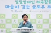 한국시사경제 문화팀 | 남양주시는 9월 18일, 광릉숲 일대에서 장애인과 비장애인이 함께 걷고 공감하는 ‘마음이 걷는 슬로우 트래킹’ 대회의 막을 성황리에 올렸다. 대회는 19일까지 이틀간 진행될 예정이다. 이번 행사는 경기도장애인체육회 ‘2025년 발달장애인 체육활동 지원’ 공모사업의 일환으로, △남양주시북부장애인복지관 △남양주시걷기연맹 진접읍지회 △남양주시장애인체육회가 함께 주관해 개최됐다. 장애인과 비장애인이 함께 걷는 과정을 통해 상호 이해와 배려의 문화를 확산하고, 시민들에게는 자연 속에서 치유와 여유를 되찾는 시간을 제공하기 위해 추진됐다. 시민 누구나 참여할 수 있는 이번 걷기 행사는 봉선사를 출발해 생태습지공원을 경유한 뒤 돌아오는 약 3㎞의 트래킹 코스로 진행된다. 참가자들은 편안하게 천천히 걷는 과정을 통해 옆 사람과 소통하고, 계절의 변화를 느끼며 자연과 교감하는 행복한 시간을 가졌으며, 행사 현장에는 자원봉사자들이 배치돼 참가자들의 안전을 살피고 원활한 행사 진행을 도왔다. 행사 첫날 주광덕 시장을 비롯해 장애인과 비장애인, 자원봉사자 등 참여자 150여 명이 함께해 의미를 더했다. &nb
