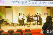 한국시사경제 부산취재본부 | 부산 동구는 지난 6일 동구청 로비층 대강당에서 청소년 장기자랑 행사인 ‘2025. 동구 청소년 끼자랑 파티’를 성황리에 개최했다. 작년에 이어 올해도 열린 이번 행사는 자라나는 청소년들에게 재능을 뽐내고 특별한 추억으로 남을 무대를 마련하기 위해 추진됐다. 행사는 롯데 자이언츠 치어리더들의 격려공연으로 시작됐으며 관객들의 열렬한 환호 속에 분위기는 한껏 달아올랐다. 치어리더들의 응원에 힘입어 청소년들은 자신감 있게 무대에 올라 팀별 댄스, 노래, 밴드 등 열정적인 공연을 펼쳤다. 부산중, 경남여고, 경남여중, 부산국제영화고, 선화여중, 5개 학교에서 모인 12팀 63명의 청소년들은 이날 가지고 있는 끼를 마음껏 뽐내며 무대의 주인공이 됐다. 또 장기자랑을 구경하러 온 청소년들은 친구들을 응원하기 위해 응원봉이 날아갈 기세로 흔들었다. 이날 행사는 청소년들과 주민들이 함께 어울려 즐기고 응원하는 파티 같은 분위기로 막을 내렸다. 행사 만족도 설문에서 청소년들은 “너무 재밌었다. 또 하면 좋겠다”, “정말 행복한 시간이었다” 등 긍정적