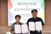 한국시사경제 부산취재본부 | 부산 동래구청소년센터(센터장 허일수)는 지난 8월 29일 동래구육아종합지원센터(센터장 김성숙)와 지역사회의 돌봄 및 성장 환경을 조성하기 위한 연계 활동의 시작으로 업무협약을 체결했다고 밝혔다. 이날 업무 협약식에는 허일수 동래구청소년센터장, 김성숙 동래구육아종합지원센터장 등 업무 관계자들이 참석해 상호 신뢰를 바탕으로 긴밀한 협력관계를 구축할 것을 약속했다. 이번 협약을 통해 양 기관은 청소년과 영유아 세대가 함께 성장할 수 있는 연계 기반을 마련하고, 세대 간의 이해 증진과 공동체 의식 함양을 위한 다양한 프로그램을 운영해 나갈 계획이다. 이를 통해 지역사회의 발전에도 크게 기여할 것으로 기대된다. 동래구 관계자는 “이번 협약이 청소년과 영유아 세대가 함께 성장할 수 있는 지역 기반을 강화하는 중요한 계기가 될 것”이라며 “구에서도 양 기관의 협력 활동을 적극 지원해 아이들이 건강하게 자라날 수 있는 환경을 만들어가겠다”라고 말했다.