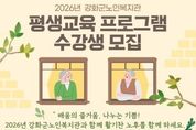 한국시사경제 사회팀 | 강화군노인복지관(관장 윤심)이 오는 12일~16일, 어르신들의 활기찬 노후와 평생학습 기회 확대를 위한 ‘2026년 평생교육 프로그램’ 수강생을 모집한다고 밝혔다. 2026년 평생교육 프로그램은 강화군에 거주하는 만 60세 이상의 어르신을 대상으로 진행되며 ▲건강 증진 6과목 12강좌 ▲교양교육 13과목 24강좌 ▲여가․취미 18과목 30강좌 ▲정보화 1과목 3강좌 ▲기획프로그램 6과목 9강좌 등 어르신들의 관심과 수요를 반영한 다양한 프로그램으로 구성된다. 노인복지관은 이번 프로그램을 통해 어르신들이 일상에서 배움을 이어가고 사회적 교류를 확대할 수 있도록 지원한다는 계획이다. 접수는 1월 12일~16일까지 진행되며, 강화군노인복지관으로 방문 접수가 가능하다. 모집인원 초과 시에는 공정성을 위해 컴퓨터 추첨을 통해 수강생을 선발할 예정이다. 2026년 평생교육 프로그램은 오는 2월 2일~12월 11일까지 운영될 예정이다. 윤심 관장은 “평생교육 프로그램은 단순한 여가 활동을 넘어 어르신들의 자기 계발과 사회참여를 돕는 중요한 역할을 지닌다”며, “많은 어르신이