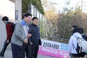 한국시사경제 사회팀 | 이상일 용인특례시장이 7일 아침 성복고등학교 정문 앞에서 ‘개인형 이동장치(PM·Personal Mobility)’ 안전 캠페인에 참여해 안전한 등굣길 조성을 위한 소통 행보를 펼쳤다. 성복고등학교 학부모와 용인서부 녹색어머니회 측의 요청으로 캠페인에 참여한 이 시장은 성복고등학교 학생들이 안전하게 개인형 이동장치를 이용할 수 있도록 이용 수칙과 교통사고에 대한 경각심을 알렸다. 또 현장에서 교통지도에 나선 봉사자들을 격려하고, 학교 관계자·학부모와 함께 학교 주변에 마련된 시설들을 점검했다. 캠페인에는 이상일 시장과 성복고등학교 교직원, 성복고등학교 학부모회, 용인서부경찰서와 용인서부 녹색어머니회 회원, 모범운전자회 등 30여 명이 참여했다. 참가자들은 등교하는 학생들에게 ▲안전모 착용 ▲무면허 운전 금지 ▲승차 인원 준수 등 개인형 이동장치를 이용할 때 반드지 지켜야 하는 안전 수칙을 전달했다. 안전 캠페인이 끝난 후 이 시장은 교통지도 봉사에 나선 성복고등학교 교직원과 학부모회, 녹색어머니회, 모범운전자회 회원들과 안전한 등굣길 조성을 위한 의견을 교환했다.