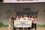 한국시사경제 사회팀 | 수원특례시가 제3회 경기도 인권행정 추진 우수 자치단체 평가에서 최우수상으로 선정되며 3년 연속 최우수상을 받는 성과를 거뒀다. 시상식은 9월 30일 경기도청 다산홀에서 열렸다. 수원시는 ▲인권행정 제도 구축 ▲인권침해 조사·구제 ▲인권영향평가 ▲인권실태조사 ▲인권교육 ▲인권 관련 행사 추진 등 인권행정 전반적인 부분에서 좋은 평가를 받았다. 수원시는 ‘수원시 인권 기본조례’를 근거로 인권담당관(1관 2팀 전담조직)을 운영하고 전문 인력을 배치해 안정적인 인권행정 추진 체계를 확립했다. 또 수원시와 수원시 소속기관 전반에서 발생한 인권침해 사안에 대해 상담·조사를 하고, 문제점을 발견하면 개선 권고를 해 피해 구제·재발 방지를 하고 있다. 또 자치법규, 주요 정책, 투표소, 보행환경 등에 대해 인권 영향 평가를 시행해 정책 추진 전 과정에서 인권 관점을 반영하고, 수원시·협업 기관 인권침해 실태조사, 시민 인권인식 조사를 정례적으로 시행해 정책 개선 근거로 활용하고 있다. 아울러 모든 공직자를 대상으로 하는 인권교육을 정례화하고, ‘수원시민인권학교’(아카데미, 토크콘서트, 찾
