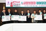한국시사경제 사회팀 | 2026년 붉은 말의 해, 용인특례시 사랑의 열차 이어달리기에 지역사회 따뜻한 나눔의 손길이 이어지고 있다. ‘사랑의 열차 이어달리기’는 용인의 대표 연말연시 이웃돕기 운동이다. 시는 지난해 12월 3일 시청 컨벤션홀에서 ‘희망 2026나눔캠페인 사랑의 온도탑제막식 및 사랑의 열차 이어달리기 발대식’을 열었다. ‘사랑의 열차 이어달리기’는 2월 6일까지 총 68일 동안 이웃돕기 성금 14억 원 모금을 목표로 이뤄진다. 삼성노블라이프 주식회사가 지난해 12월 23일 바자회 수익금 534만9000원을 기탁했다. 같은 날 에버찜질사우나는 성금 500만원을, ㈜토오텍 성금 200만원을, ㈜액션테크는 627만원 상당의 소화기 230대를 시에 기탁했다. 또 ㈜경자네식구들은 350만원 상당의 밀키트 1,000개를, 용인시 기업지원과는 성금 100만원을 전달했다. 수지구청 직장어린이집은 지난해 12월 29일 어려운 이웃에 전달해 달라며 라면 366개를 기탁했다. 이영애 원장은 “아이들이 직접 보고 느끼는 나눔의 기쁨을 통해 진짜 크리스마스의 의미를 느낄 수 있었을 것”이라고 했다. &nbs