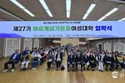한국시사경제 사회팀 | 바르게살기운동 인천 서구협의회는 9월 27일 서구청 대회의실에서 ‘제27기 바르게살기운동 서구여성대학 입학식’을 개최했다. 이날 행사에는 송승환 서구의회 의장을 비롯해 바르게살기 운동 군‧구협의회 회장, 서구협의회 임원 및 회원, 그리고 입학생 180여 명이 참석해 성황을 이뤘다. 제27기 여성대학은 인천 서구 관내 주부들을 대상으로 11월 20일 수료식까지 매주 목요일 가좌동 나은병원에서 진행되며, 여성들의 역량 강화와 지역사회 발전을 위한 배움의 장으로 운영된다. 여성대학은 바르게살기운동의 3대 이념인 ‘진실, 질서, 화합’을 교육이념으로 삼고, 다양한 강의와 프로그램을 통해 학생들이 자신감을 키우고, 서로를 격려하며 새로운 시각으로 세상을 바라볼 수 있도록 돕는다. 바르게살기운동 인천서구협의회는 “지역사회에 관심을 가지고 봉사에도 적극 참여하며, 행복한 가정과 더불어 잘사는 서구 발전에도 큰 힘이 되어 주시기를 기대한다”라며 “입학생 모두가 건강하고 즐겁게 배우는 시간이 되기를 바란다”라고 전했다.