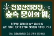 한국시사경제 세종취재분부 | 세종특별자치시시설관리공단(이사장 조소연)은 오는 9월 27일부터 전월산국민여가캠핑장에서 '숲속 문화의 밤'프로그램을 정기 운영한다고 밝혔다. '숲속 문화의 밤'은 매월 넷째 주 토요일 전월산캠핑장 잔디광장에서 진행되며, 캠핑장을 이용하는 이용객이라면 누구나 부담없이 즐길 수 있는 행사를 운영한다. 특히 9월 첫 회차에는 지역 예술인 공연이 함께 마련되어 이용객들에게 특별한 가을밤의 추억을 선사할 예정이다. 이번 프로그램은 캠핑장 내 놀거리가 부족하다는 이용객의 의견을 반영해 기획된 것으로, 영화 상영과 공연을 통해 문화 향유 기회를 넓히고 이용객 모두가 즐길 수 있는 여가 문화를 조성하고자 마련됐다. 조소연 이사장은 “전월산캠핑장이 단순한 야영 공간을 넘어 문화와 여가를 함께 즐길 수 있는 열린 복합문화공간으로 발전시킬 것”이라며, “앞으로도 시민과 관광객 모두가 만족할 수 있는 다채로운 프로그램을 지속 발굴하겠다”고 말했다.