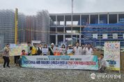 한국시사경제 세종취재분부 | 세종특별자치시가 25일 아성다이소 세종허브센터 건설현장에서 세종시노사민정협의회와 함께 산업재해 예방 캠페인을 진행했다고 밝혔다. 이번 캠페인은 건설현장 사고 발생 예방 홍보를 통해 근로자들의 산업재해 경각심과 안전의식을 높이기 위해 추진됐다. 이날 노사민정협의회 위원, 시 관계자 등 캠페인 참여자들은 현장 관리직원과 근로자 400여 명에게 산재예방 홍보물과 음료 등을 배부했다. 권오수 기업지원과장은 “산업재해 예방의 첫 번째 단계는 안전의식을 높이는 것”이라며 “이번 캠페인이 현장 근로자들에게 사고 예방에 대한 경각심을 일깨우는 계기가 되기를 바란다”고 전했다. 한편 시는 2023년 ‘산업재해 예방 조례’가 제정된 이후 산업안전 컨설팅, 산업안전 지킴이 활동 등을 꾸준히 진행하고 있다. 또 ‘중대재해처벌법’ 확대 시행에 따라 소규모 사업장을 대상으로 산업재해 예방 활동도 추진 중이다.