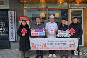 한국시사경제 세종취재분부 | 세종특별자치시 보람동지역사회보장협의체(공동위원장 허인강·신현교)가 6일 이가옥 뼈 해장국(대표 이형진)에 착한가게 26호 현판을 전달했다. 착한가게는 사회복지공동모금회가 소상공인, 자영업자를 대상으로 시행 중인 기부 홍보활동으로, 매달 3만 원 이상 정기적인 기부로 나눔을 실천하는 가게다. 기부금은 보람동지역사회보장협의체 특화사업 등으로 지역 저소득 가구 지원 사업에 활용될 예정이다. 이형진 이가옥 뼈 해장국 대표는 “작은 정성이지만 도움이 필요한 이웃들에게 위로가 되길 바란다”고 말했다. 허인강 동장은 “새해에도 이어지는 훈훈한 나눔이 보람동을 더욱 따뜻하게 하고 있다”며 “선한 나눔이 더욱 확산될 수 있도록 최선을 다하겠다”고 전했다.