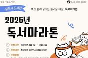 한국시사경제 오영주 기자 | 청주시립도서관은 시민들의 독서 습관 형성과 책 읽는 문화 확산을 위해 ‘2026 독서마라톤’을 운영한다고 26일 밝혔다. ‘독서마라톤’은 책을 읽고 독서기록을 작성하면 이를 거리로 환산해 정해진 코스를 완주하는 참여형 독서 프로그램이다. 시민들이 일상에서 꾸준히 책을 읽고 독서의 성취감도 느낄 수 있도록 마련됐다. 신청 기간은 오는 4월 1일부터 8월 31일까지며, 대회 기간은 4월 1일부터 9월 30일까지 총 183일간이다. 참여 대상은 초등학생 이상 청주시립도서관 도서 대출 정회원이다. 도서관 누리집 ‘책으로 행복한 청주’ 내 독서마라톤 신청 페이지에서 접수하면 된다. 독서기록은 독서일지를 작성하면 인정되며, 기록 기준은 ‘1쪽당 2m’이다. 참가자는 개인 6개 코스와 단체 2개 코스 중 선택해 참여할 수 있다. 운영 코스는 △시립도서관 1.5km △철당간 3km △수암골 5km △상당산성 10km △정북동토성 21km △초정행궁 42.195km로 구성됐다. 완주자에게는 2027년 도서 대출 권수 2배 확대 혜택과 기념품이 제공되며, 우수 완