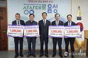 한국시사경제 오영주 기자 | 음성군은 지난 20일 군수 집무실에서 관내 5개 기업체가 1000만원 상당의 후원금품을 음성군장애인체육회(회장 조병옥)에 기탁했다고 밝혔다. 이번 기탁에는 △(주)제일참 300만원 △(주)21세기소방 200만원 △(주)창영케미칼 200만원 △성본산업단지(주) 라면 등(200만원 상당) △은찬종합건설(주) 100만원 등 총 5개의 기업이 후원금품을 전달했다. 기탁받은 후원금품은 장애인 체육시설 개선, 훈련비 지원, 장애인 체육 프로그램 지원 등 음성군 장애인 체육 발전을 위해 사용될 예정이다. 기업 대표들은 “지역 장애인 체육 활성화를 위해 기업의 사회적 책임을 다할 수 있어서 뜻깊다”며 “관내 장애인들이 체육활동을 통해 건강한 삶을 이어가고, 꿈을 키울 수 있도록 계속 관심을 가지고 지원하겠다”고 밝혔다. 조병옥 음성군장애인체육회장은 “관내 기업들의 장애인 체육 저변확대를 위한 지속적인 관심과 지원에 감사드린다”며 “기탁된 후원금은 장애인들의 체육 참여 확대와 역량 강화 등 현장 중심 지원으로 소중히 사용하고, 내년 충북장애인도민체육대회의 성공적 개최를 위해 노력하겠다”