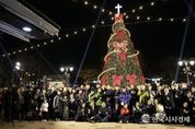 한국시사경제 오영주 기자 | 충북 보은군은 11월 30일 오후 5시 뱃들공원 시계탑 앞 광장에서 대형 크리스마스트리 점등식을 개최하며 본격적인 겨울 분위기를 알렸다. 이날 행사에는 최재형 보은군수와 윤대성 보은군의회 의장을 비롯해 군민과 기독교연합회 등 200여 명이 참석해 따뜻한 축제의 장을 함께했다. 이번에 설치된 크리스마스트리는 높이 8m 폭 4m 규모의 대형 트리로, 십자가 모양의 장식과 오브제 등이 조화를 이루며 뱃들공원 일대를 겨울 감성 명소로 탈바꿈시켰다. 트리는 오는 2026년 1월 말까지 매일 저녁 5시부터 밤 11시까지 환하게 점등될 예정이다. 점등식은 찬양, 성탄 메시지, 축사, 기념촬영 순으로 진행됐으며, 카운트다운과 함께 트리에 불이 들어오는 순간 환한 조명이 한꺼번에 켜지자 군민들은 박수와 환호를 터뜨리며 기쁨을 나눴다. 트리 앞에서 함께 사진을 촬영하며 휴대폰으로 영상을 기록하는 시민들도 많아 겨울 정취를 만끽하는 분위기가 이어졌다. 최재형 군수는 “크리스마스트리의 따뜻한 빛이 군민 여러분의 삶에 희망과 위로가 되기를 바란다”며 “가족·이웃과 함께 마음이 풍성한 연말 보내