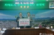한국시사경제 오영주 기자 | 14일, 조용익 부천시장을 비롯한 부천시 충청권 정책현장 벤치마킹 방문단 24명이 ‘향수의 고장’ 옥천군을 방문했다. 이번 만남은 2002년 자매결연을 체결한 두 지역 간의 우호 증진과 교류 확대를 위한 자리로 마련됐다. 이날 옥천군과 부천시는 각 200만 원의 고향사랑기부금을 상호 기탁하며 두 지역의 발전을 함께 응원했다. 황규철 옥천군수는 옥천군청에 마련된 기탁식에서 “공직자들의 고향사랑 상호 기부가 지역 간 상생 협력의 통로가 되고 있다”며 “부천시와 따뜻한 연대를 이어가게 되어 기쁘다”고 말했다. 조용익 시장 역시 “기부를 통해 두 지역이 더욱 돈독해지고, 함께 성장할 수 있기를 기대한다”고 전했다. 특히, 얼마 전 모금을 시작한 ▲옥천군 첫 지정기부사업 '예체능 꿈나무 지원(양궁·관악부)'과 ▲부천시 지정기부사업 '소외계층 스케이트 무료교실 운영'을 각각 홍보하여 두 자매도시의 협력 관계를 바탕으로 기부제 확산에 긍정적 영향을 미칠 것으로 기대된다. 옥천군에 따르면, 두 도시의 인연은 1940년대 부천시에 거주하며 소사성당 건립에 기여한 정지용 시인의 공덕을 기리며 시작됐고