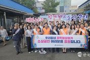 한국시사경제 울산취재본부 | 울산 남구는 29일 울산농수산물시장 수산소매동 일원에서 소상공인연합회 회원과 공무원 80여 명이 참여한 가운데 소상공인 응원 캠페인을 펼쳤다고 밝혔다. 이번 캠페인은 남구 제5호 골목형상점가로 지정된 울산농수산물시장 수산소매동에서 9월 29일부터 10월 2일까지 열리는‘가을&전어day’행사에 앞서 지역 소상공인의 사기를 북돋우고 소비 촉진을 유도하기 위해 기획됐다. 캠페인 참가자들은 소상공인 응원 메시지가 담긴 어깨띠를 두르고 시장을 돌며 행사 홍보와 응원 메시지를 전달했다. 특히 시장 내 초장집에서 점심식사를 하며 상인 격려와 소비촉진에 동참해 민관 협력으로 상권 활성화에 활력을 불어넣는 계기가 됐다. 서동욱 남구청장은 “지역경제의 뿌리는 바로 우리 소상공인 여러분이라는 생각은 변함이 없다”며 “앞으로도 남구는 상인들에게 실질적인 힘이 되고 골목상권과 함께 성장하는 행정을 펼쳐 나가겠다”고 덧붙였다. 한편, 9월 29일부터 10월 2일까지 울산농수산물시장 수산소매동 번영회 주관으로 준비한 ‘가을&전어day’축제에는 ▲수산물 및 주류 할인 ▲영수증 이벤트
