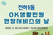 한국시사경제 울산취재본부 | 울산 동구는 오는 9월 24일 오후 2시부터 4시까지 바드래공원에서 ‘전하1동 OK생활민원 현장서비스의 날’ 행사를 개최한다. 이번 행사는 올해 다섯 번째로 열리는 OK생활민원 현장서비스의 날 행사로 주민들이 일상생활에서 느끼는 불편을 해소하고 삶의 질 향상을 위한 다양한 분야로 구성했으며, 이번 행사 운영을 위해 자원봉사자, 민간 기술자, 관계 공무원 등 70여 명이 참여한다. 서비스 분야는 총 4개로 주민 편익(칼갈이, 분갈이, 자전거 수리, 안경 및 귀금속 세척), 주민 체험(외국인 주민과 함께하는 문화 체험), 건강관리(심혈관질환, 비만 예방, 치매 예방), 동 특화사업(우리를 잇는 따뜻한 손길, 함께 만드는 전하1동) 등이 있다. 유료 체험 부스로는 반려 식물 키우기 체험이 마련되는데, 1인당 1개만 가능하며 빈 화분을 지참해야 하고 체험비는 현금으로 받는다. 2025년 OK생활민원 현장서비스의 날 전체 일정 및 전하1동 행사 정보는 울산 동구청 홈페이지 알림사항에서 확인 할 수 있다.