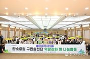 한국시사경제 울산취재본부 | 울산 중구(구청장 김영길)가 10월 23일 오후 2시 30분 중구청 대회의실에서 ‘2050 탄소중립 구민실천단 역량 강화 및 나눔 활동’을 개최했다. 이번 행사는 탄소중립에 대한 공감대를 형성하고 주민 주도형 탄소중립 실천 문화를 확산하기 위해 마련됐다. 이날 행사에는 김영길 중구청장과 박경흠 중구의회 의장, 2050 탄소중립 구민실천단 단원 등 140여 명이 함께했다. 이번 행사는 △탄소중립포인트제 안내 및 홍보 △축하 공연 △탄소중립 실천 다짐 발표 △전문가 특강 △플라스틱 용기 없는 친환경 샴푸(샴푸바) 만들기 체험 순으로 진행됐다. 이날 신규 단원인 성신고 학생 및 교사 40명은 일상에서 다양한 탄소중립 활동에 앞장서겠다는 다짐을 밝혔다. 이어서 전문가 특강 순서에는 최승룡 에넬엑스코리아 신사업본부장이 ‘탄소중립과 세계적 추세(글로벌 트렌드)’라는 주제로 전 세계의 기후 위기 대응 흐름과 탄소중립 실천의 중요성 등을 설명했다. 이와 함께 참석자들은 플라스틱 용기 없는 친환경 샴푸(샴푸바)를 만들며 환경보호 의지를 다지고, 직접 만든 친환경